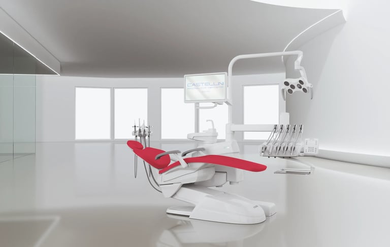 Unidades dentales, compresor, bomba de succión, autoclaves, rayos x, escaner dental, impresoras 3D y fresadoras dentales y laboratorio.